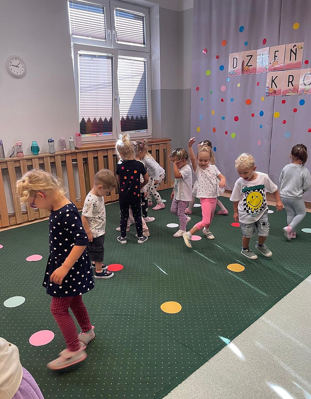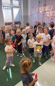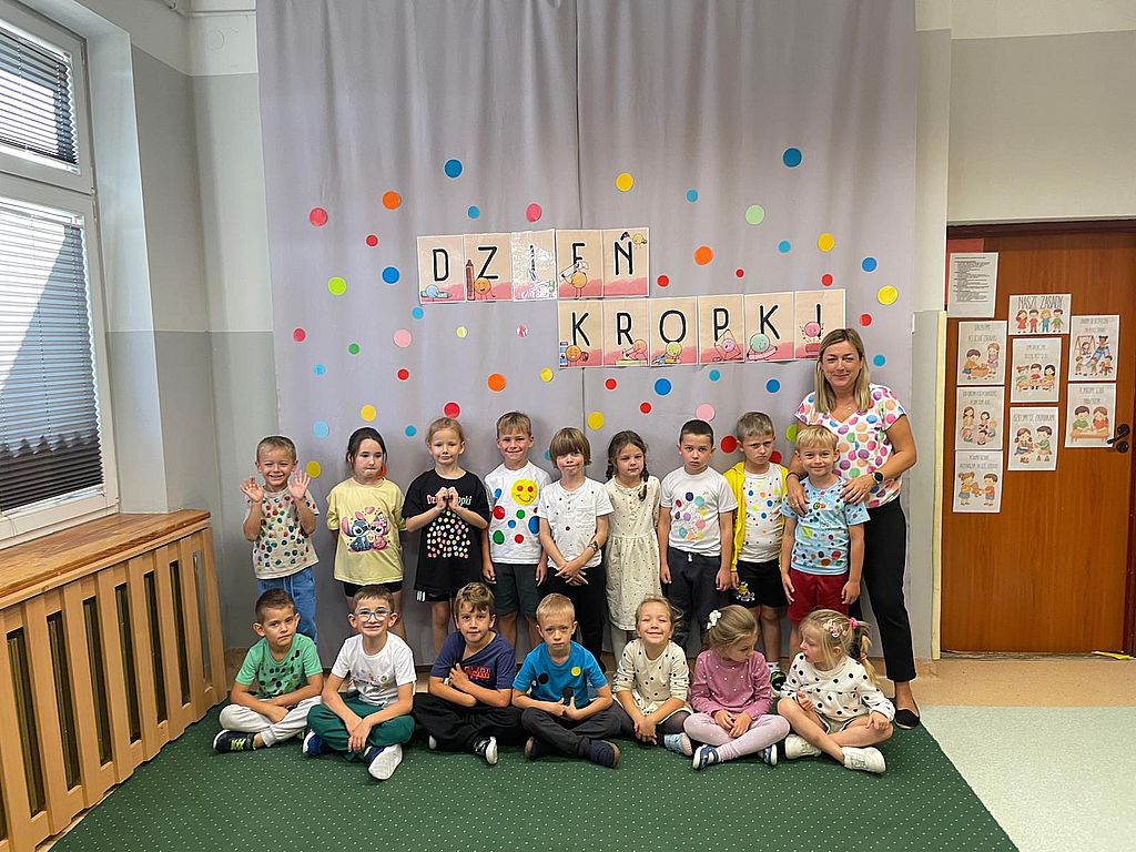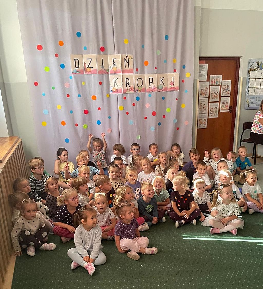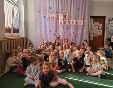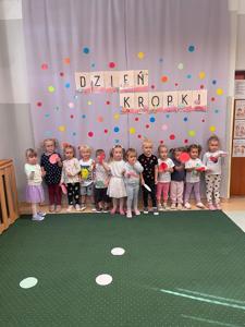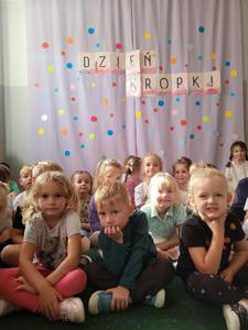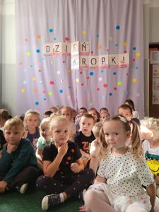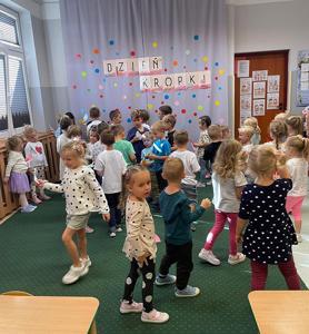 W tym dniu dzieci ubrane w ubranka z kropeczkami bawiły się zabawy integracyjne z użyciem kolorowych kropek oraz robiły "kropeczkowe" pracę plastyczne.