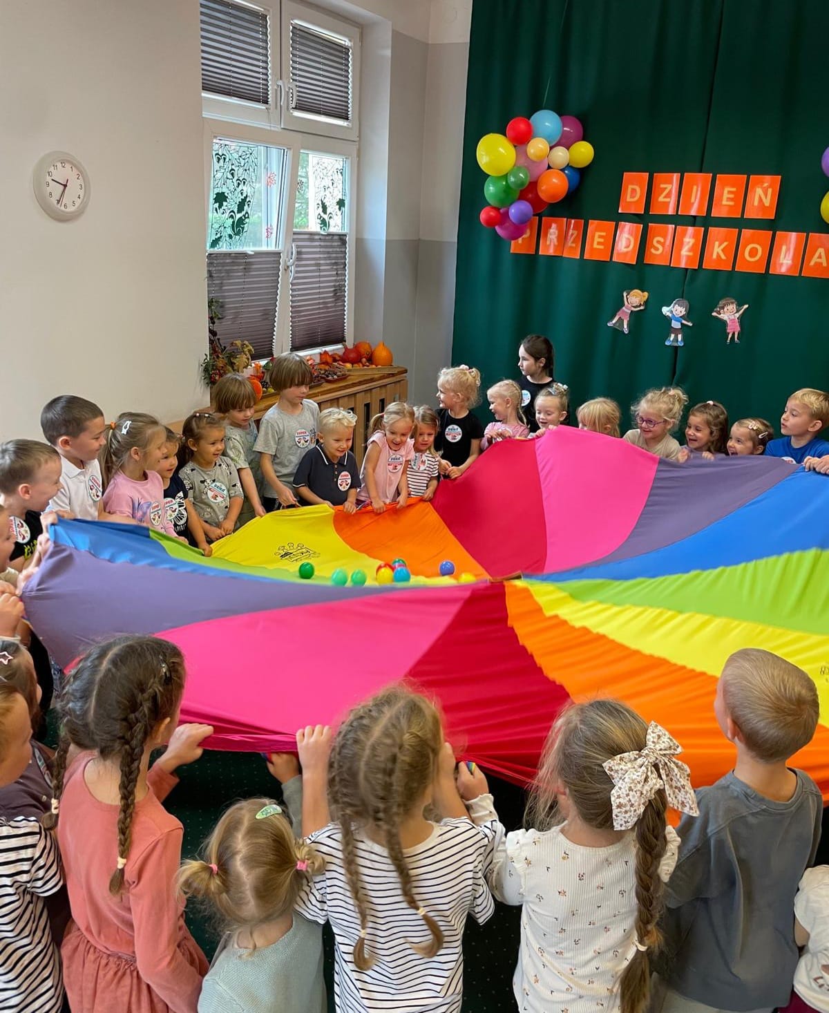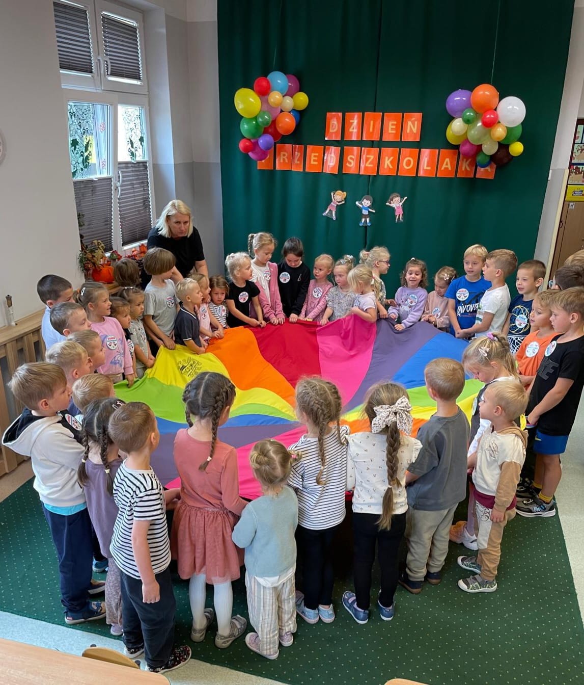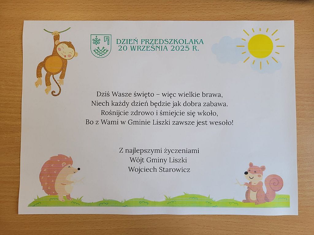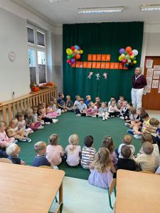 19 września obchodziliśmy Dzień Przedszkolaka. Z tej okazji Wójt Gminy Liszki - Wojciech Starowicz - napisał do najmłodszych wyjątkowy list, który odczytała Pani Dyrektor. Władze Gminy Liszki podarowały przedszkolakom słodką niespodziankę, za co serdecznie dziękujemy! Ten gest sprawił im ogromną radość i podkreślił jak ważni są najmłodsi mieszkańcy Gminy Liszki. Dzień Przedszkolaka świętowaliśmy poprzez zabawy z kolorową chustą. Były tańce przy muzyce, ale nie zabrakło też gimnastyki z piłeczkami. Każde dziecko dostało także wyjątkową odznakę "Super Przedszkolaka". Uśmiechy na twarzach dzieci są dowodem na to jak wspaniale jest być przedszkolakiem.