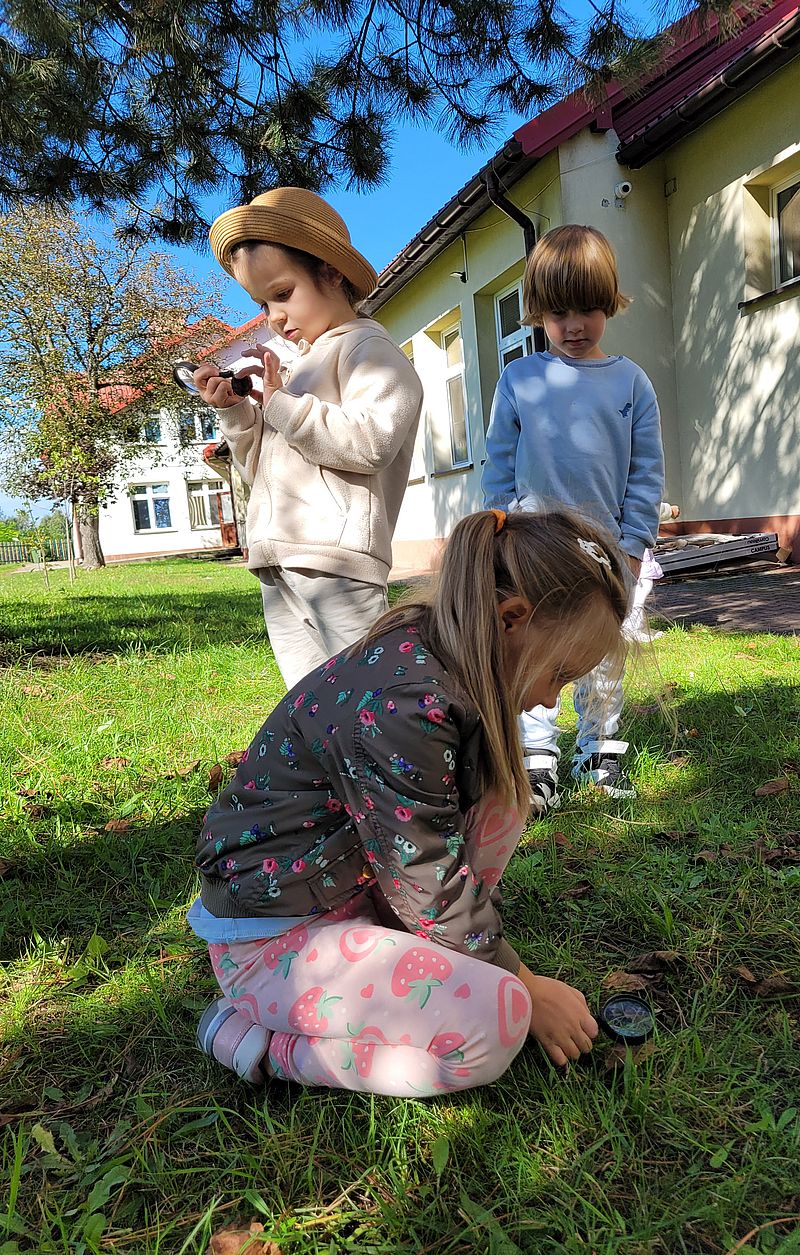 W przedszkolu rozpoczęliśmy realizację projektu „Wyzwania Teodora”. Pierwsze zadanie polegało na odkrywaniu oznak jesieni – z lupami w rękach wyruszyliśmy na małe śledztwo przyrodnicze. Dzieci z wielkim zaangażowaniem obserwowały liście, kasztany, żołędzie, szyszki oraz inne skarby jesiennej przyrody. Przedszkolaki świetnie poradziły sobie z rolą badaczy i za swoją dociekliwość zdobyły odznakę detektywa!