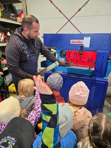 Pan ślusarz zaprezentował nam także maszyny, które potrafią ciąć i obrabiać metal – były bardzo głośne i fascynujące.
