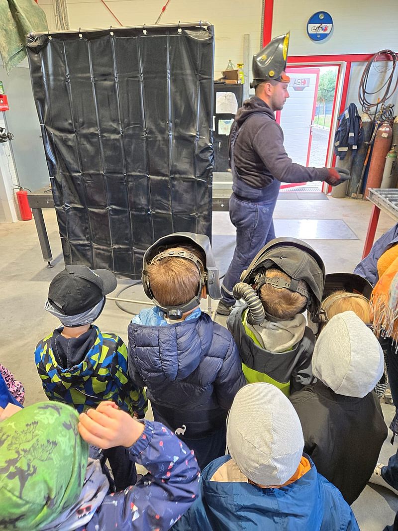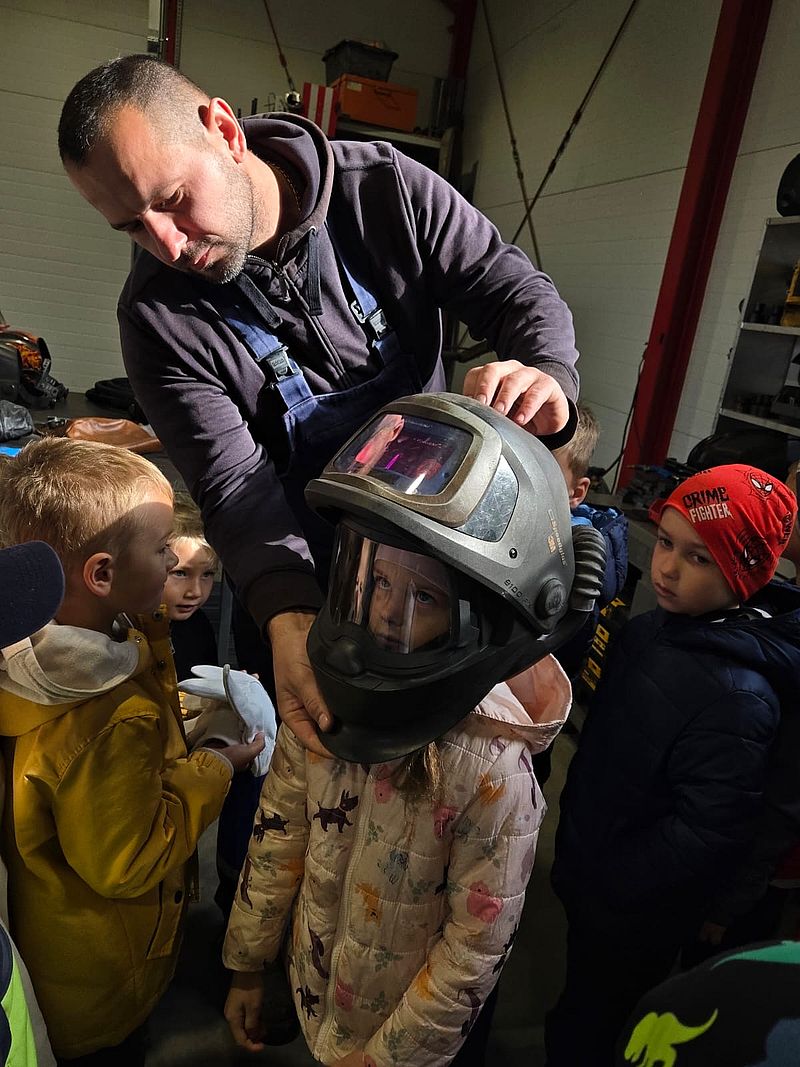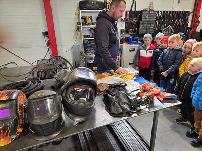 25 września w ramach preorientacji zawodowej odwiedziliśmy Pana ślusarza Artura Hojne. Na początku pokazał nam swój strój ochronny i wszystkie przybory potrzebne do pracy. Mieliśmy okazję założyć kask i rękawiczki – poczuliśmy się jak prawdziwi pomocnicy! Ślusarz opowiedział nam także czym jest spawanie- to łączenie metalu za pomocą bardzo wysokiej temperatury.