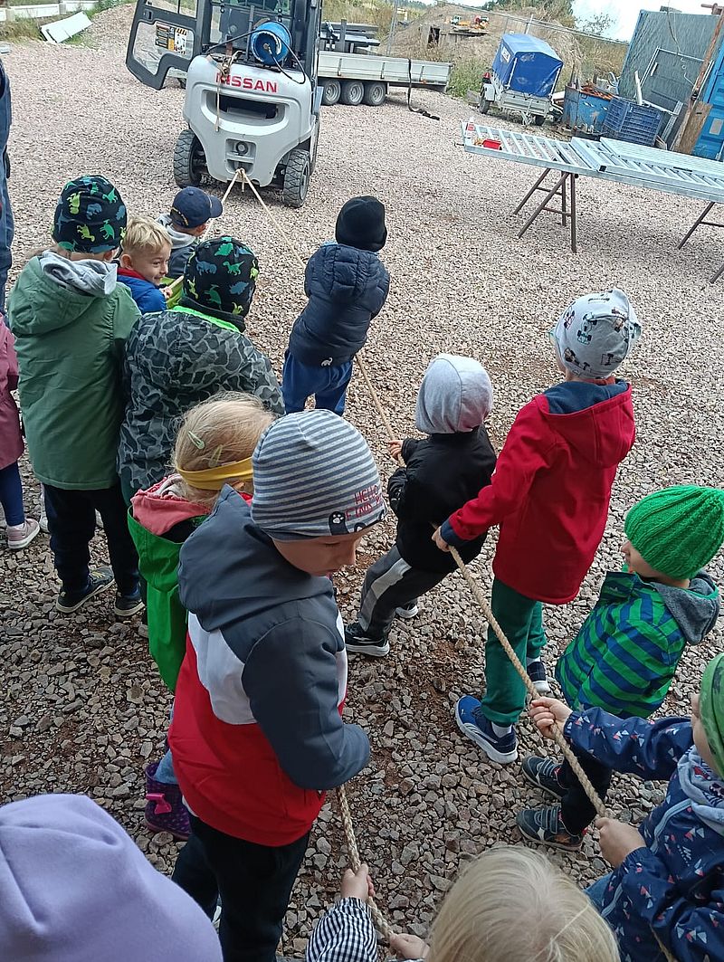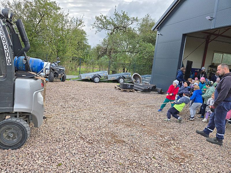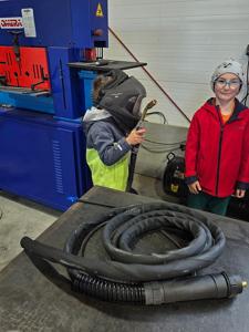 Na koniec wspólnie sprawdzaliśmy wytrzymałość spawu. Trzymaliśmy mocno linę i ciągnęliśmy, a pan ślusarz pokazywał, jak silne potrafi być połączenie metalu.