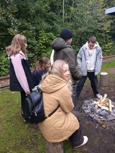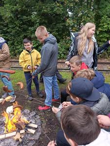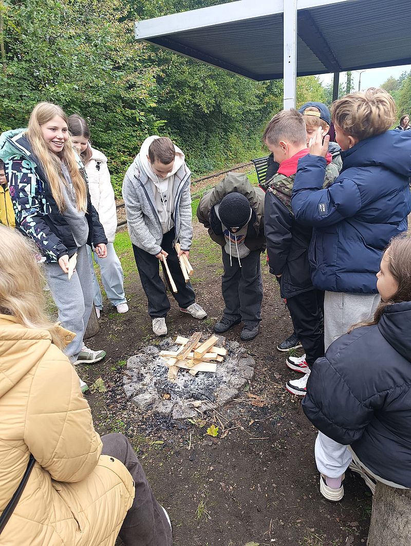 We wtorek 30 września uczniowie klasy 6 uczestniczyli w wyjątkowej wycieczce do lokalnej kolei drezynowej w Regulicach. Pierwszym punktem programu było wspólne ognisko. Uczniowie samodzielnie przygotowali miejsce, rozpalili ogień i z apetytem zjedli pieczone kiełbaski. Nie zabrakło również zabaw integracyjnych, które dostarczyły wiele radości.