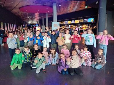 W poniedziałek 29.09- klasa1, 2 i 3 wybrały się do kina na film pt. "Niesamowite przygody skarpetek” 2 – Skarpetki górą. To adaptacja bardzo lubianej przez dzieci serii książek autorstwa Justyny Bednarek. Dzieci mogły śledzić sześć nowych pełnych przygód historii, które z z humorem i lekkością opowiadaja o marzeniach, odwadze i sile wyobraźni. Był to dla nas czas wspólnej zabawy i radości. A także zainspirował do rozmów i dyskusji o przeżyciach i wyborach sympatycznych bohaterek tego filmu.