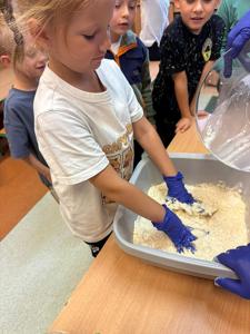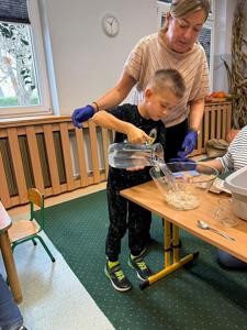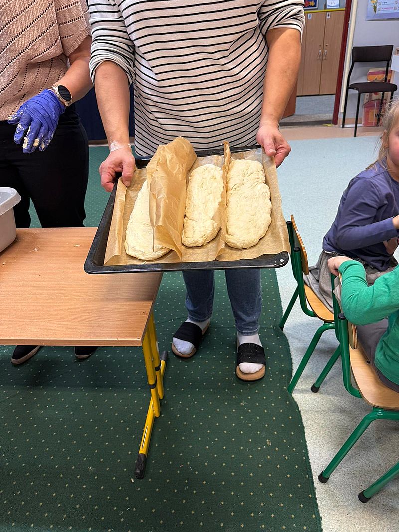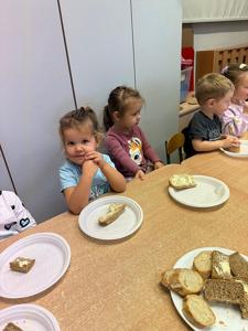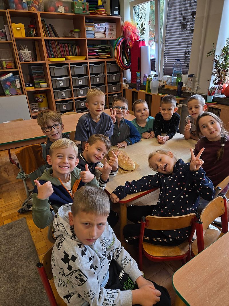 Dziś w przedszkolu obchodziliśmy Światowy Dzień Chleba (16 października). Dzieci dowiedziały się: Jak powstaje mąka i chleb (od ziarenka do bochenka). Na czym polega praca piekarza. Jakie są rodzaje pieczywa i składniki potrzebne do wypieku. Przedszkolaki mogły poczuć się jak prawdziwi piekarze - ugniatały ciasto i formowały własne chlebki. Następnie degustowały świeże, pachnące pieczywo. Celem zajęć było uświadomienie dzieciom, że proces powstawania chleba wymaga pracy wielu ludzi i że jest on bardzo ważny w życiu człowieka.