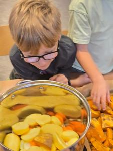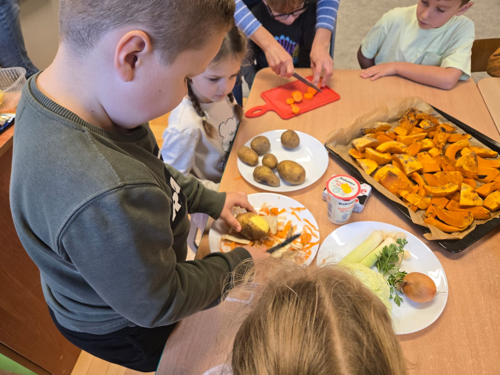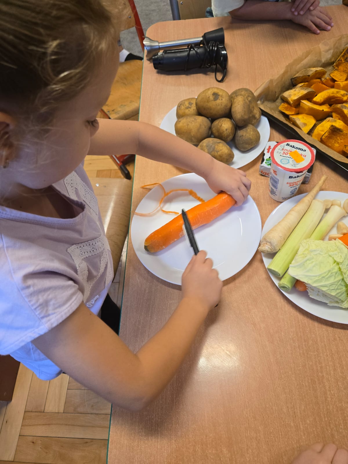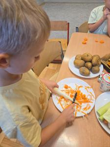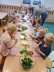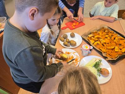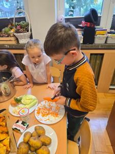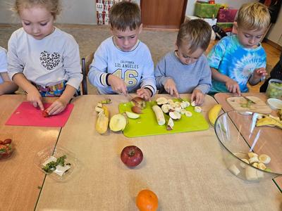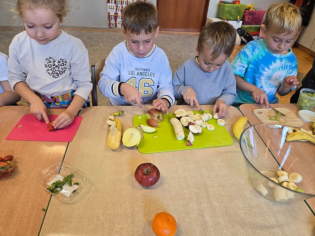 Pierwszy moduł innowacji pedagogicznej poświęcony rozwijaniu samodzielności i kompetencji praktycznych u dzieci, zrealizowany został na przykładzie przygotowania sałatki owocowej. Głównym celem modułu było nabycie przez uczestników umiejętności planowania, współpracy oraz bezpiecznego posługiwania się prostymi narzędziami kuchennymi, prowadzących do stworzenia w pełni samodzielnie przygotowanego posiłku. Kolejnym etapem było przygotowanie przez dzieci zupy dyniowej, degustacja owoców i przygotowanie kompotów i ogórków kiszonych na zimę. Dzieci wykazały duże zaangażowanie i radość z możliwości samodzielnego działania i konsumpcji własnoręcznie przygotowanych dań. Uczestnicy z dumą prezentowali efekty swojej pracy, co przełożyło się na wzrost pewności siebie w wykonywaniu prostych czynności domowych. Przeprowadzone ćwiczenia i instruktaże dotyczące higieny pracy i bezpieczeństwa przy użyciu narzędzi zostały przyswojone i zastosowane w praktyce. Moduł potwierdził, że proste, kulinarne zadania są doskonałym narzędziem do rozwijania samodzielności i odpowiedzialności u dzieci.