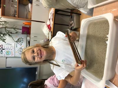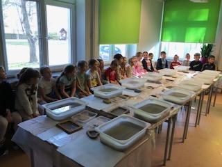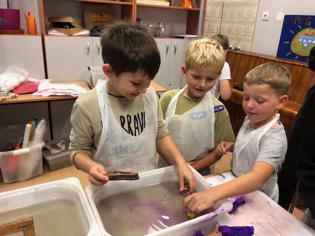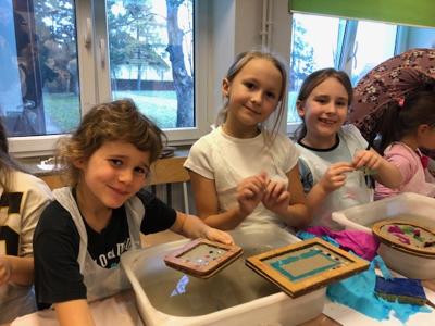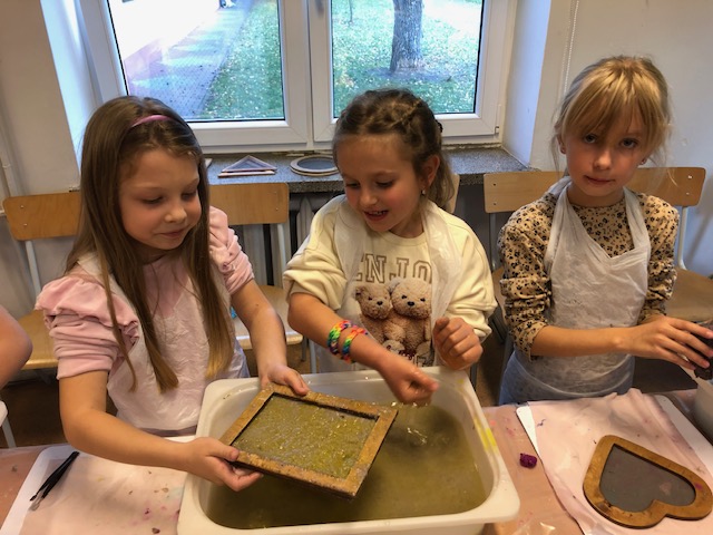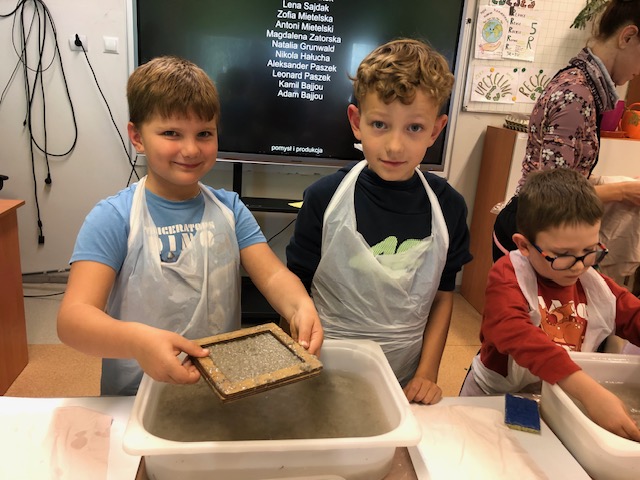 Podczas zajęć świetlicowych odbyły się warsztaty czerpania papieru, których celem było zapoznanie uczniów z tradycyjnym sposobem wytwarzania papieru oraz rozwijanie kreatywności i postaw proekologicznych.