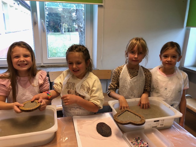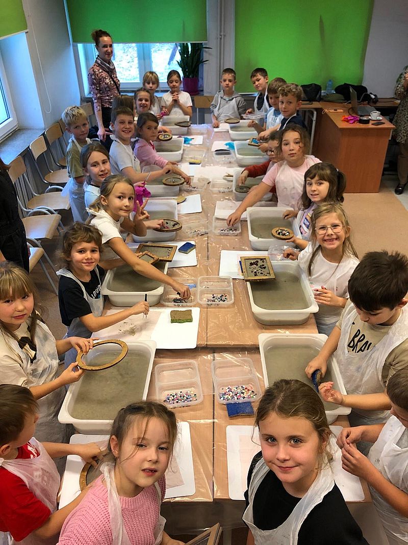 Warsztaty były dla dzieci ciekawym połączeniem nauki, zabawy i działań ekologicznych. Uczniowie z zaangażowaniem tworzyli swoje prace, a na zakończenie z dumą prezentowali efekty swojej pracy.