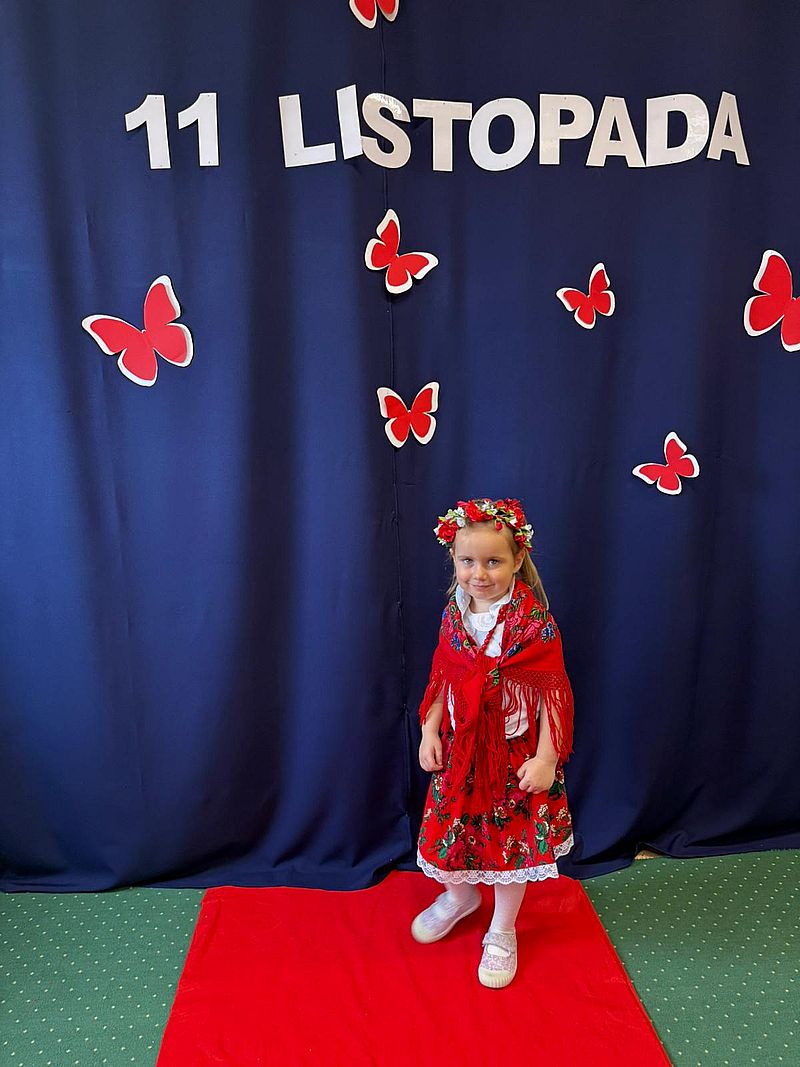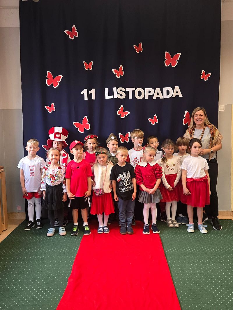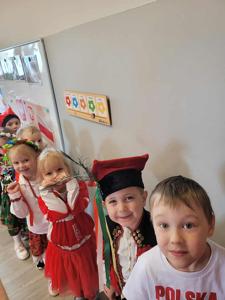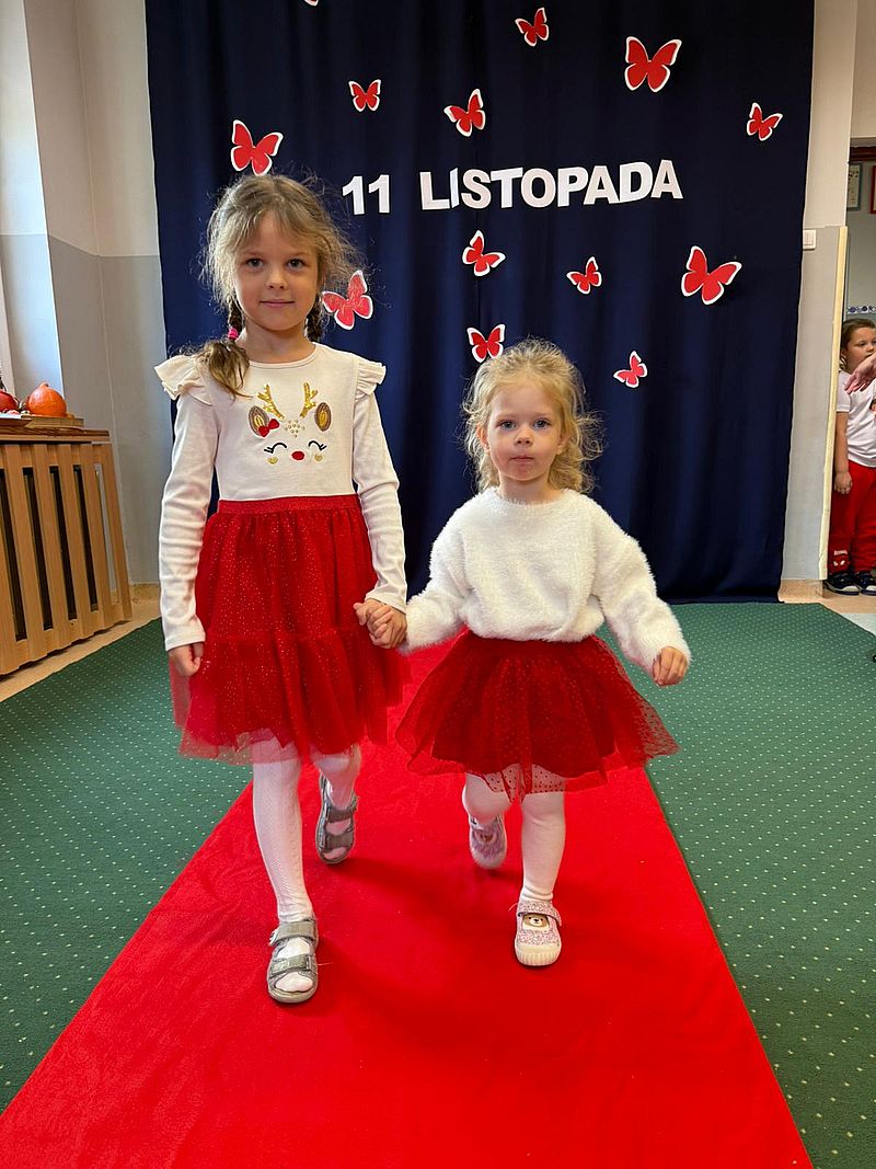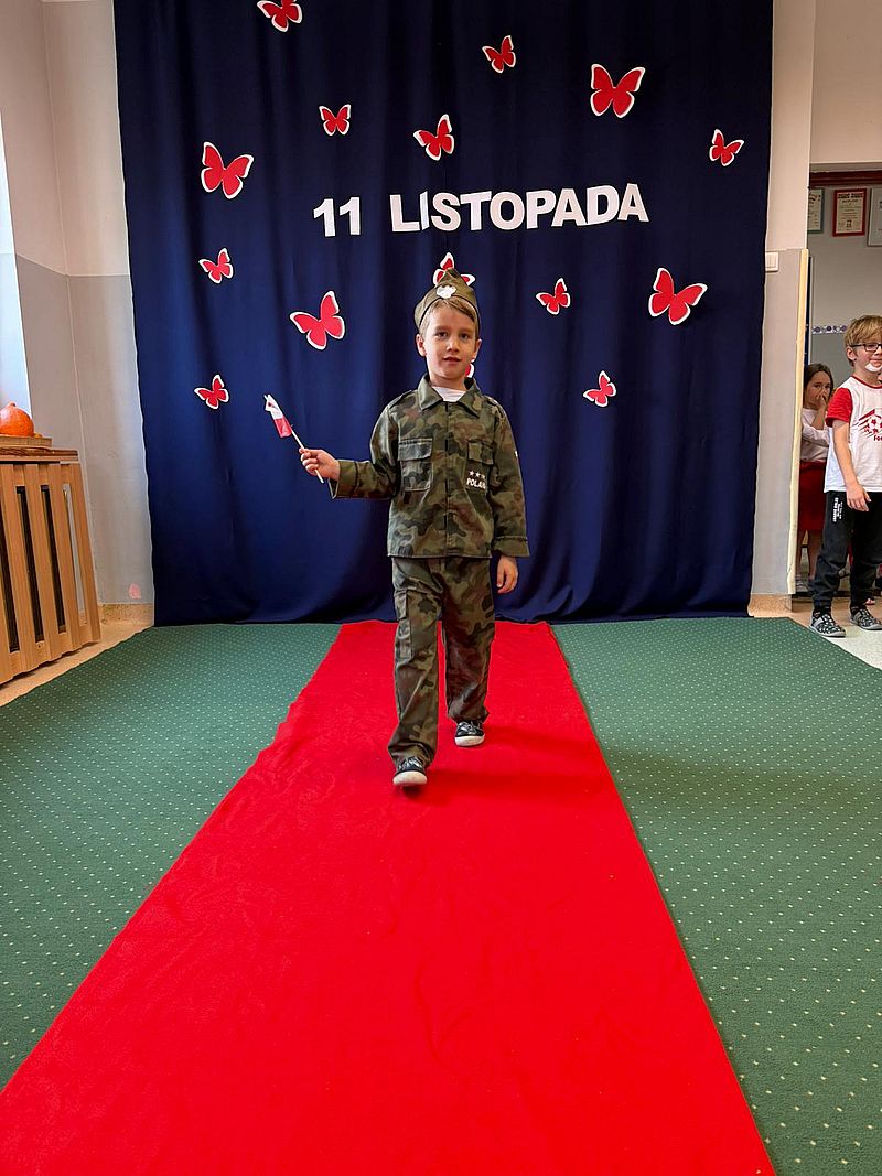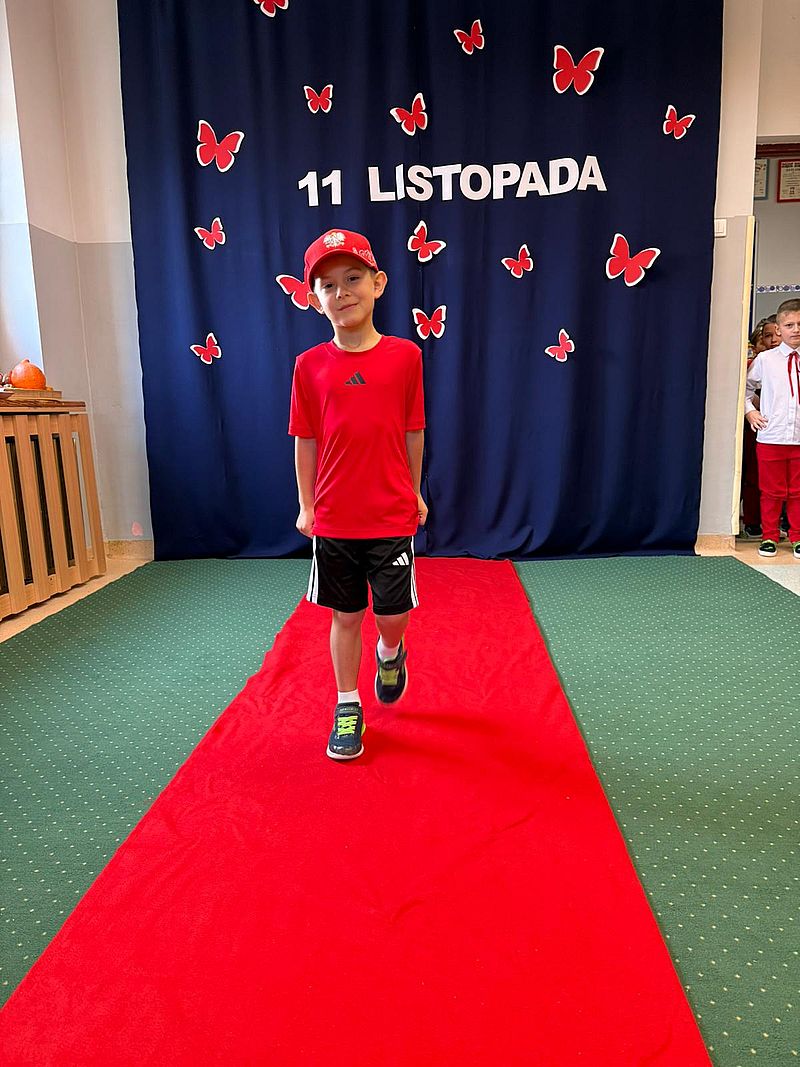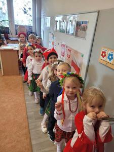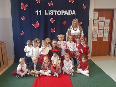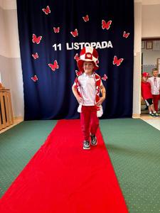 Z okazji Narodowego Święta Niepodległości w naszym przedszkolu 6 listopada odbył się pokaz mody patriotycznej. Przedszkolaki przeszły po czerwonym dywanie ubrane w stroje nawiązujące do polskich barw narodowych, w regionalnych strojach ludowych, koszulkach reprezentacji w piłce nożnej. Był również polski żołnierz. Po pokazie mody dzieci zaśpiewały hymn naszego kraju i wysłuchały kilku informacji o zbliżającym się święcie.