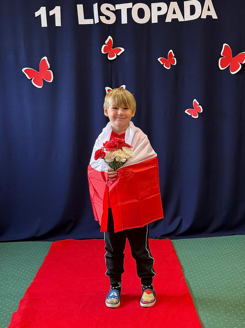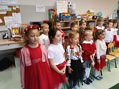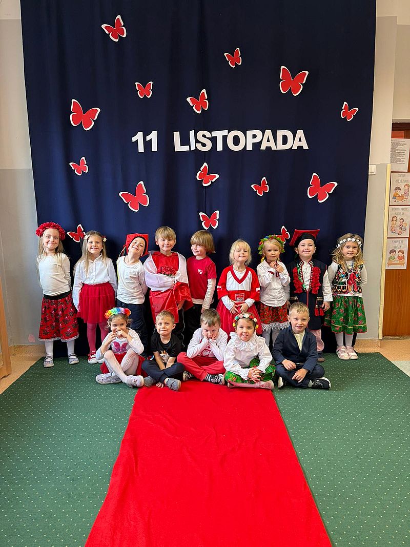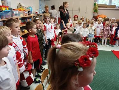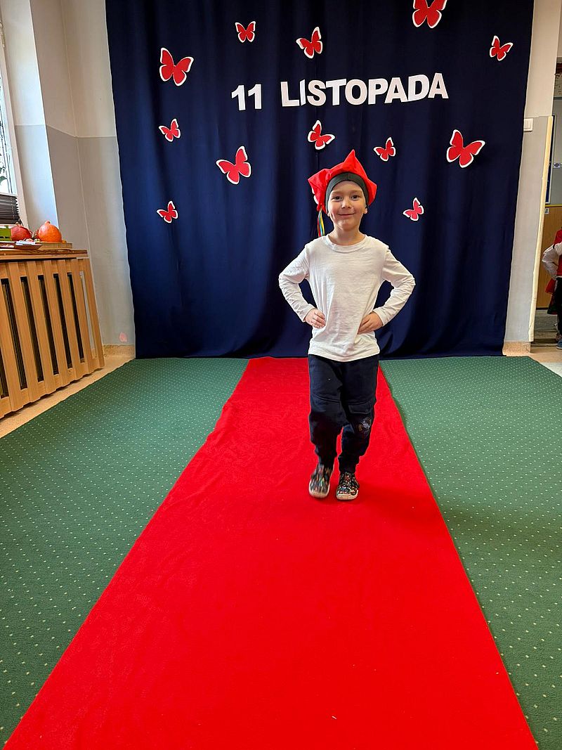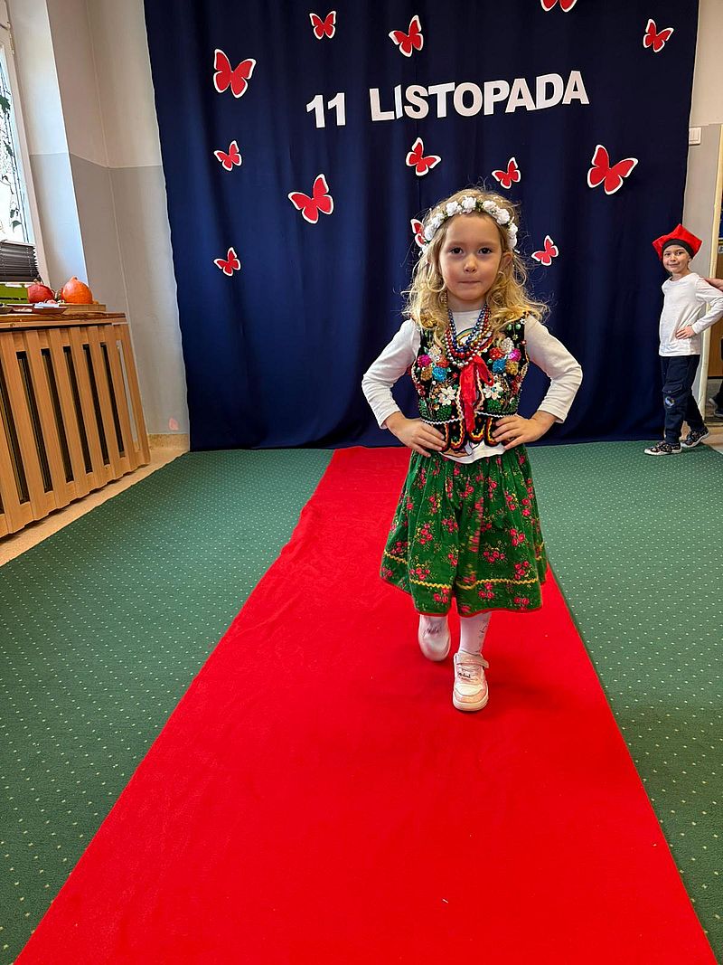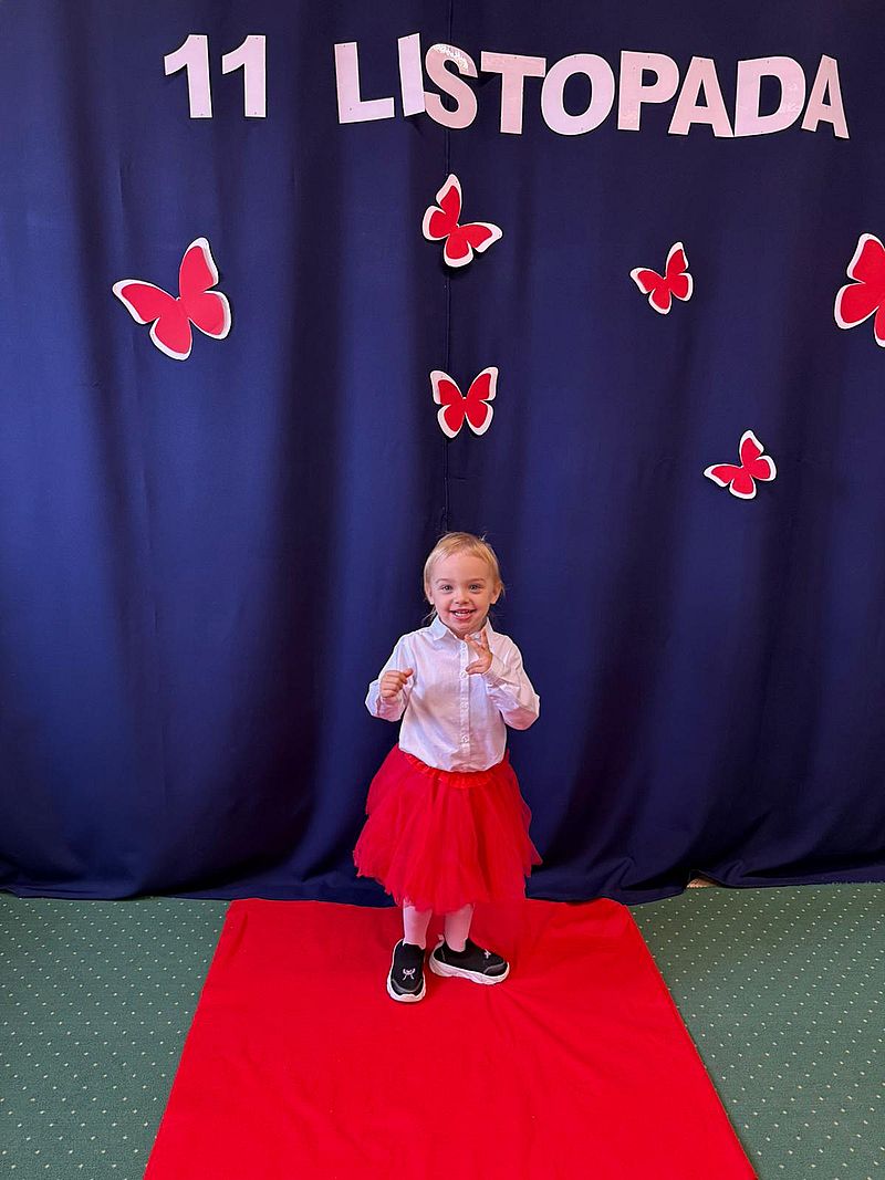 Z okazji Narodowego Święta Niepodległości w naszym przedszkolu 6 listopada odbył się pokaz mody patriotycznej. Przedszkolaki przeszły po czerwonym dywanie ubrane w stroje nawiązujące do polskich barw narodowych, w regionalnych strojach ludowych, koszulkach reprezentacji w piłce nożnej. Był również polski żołnierz. Po pokazie mody dzieci zaśpiewały hymn naszego kraju i wysłuchały kilku informacji o zbliżającym się święcie.