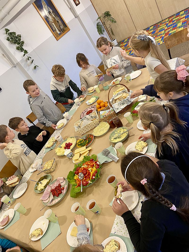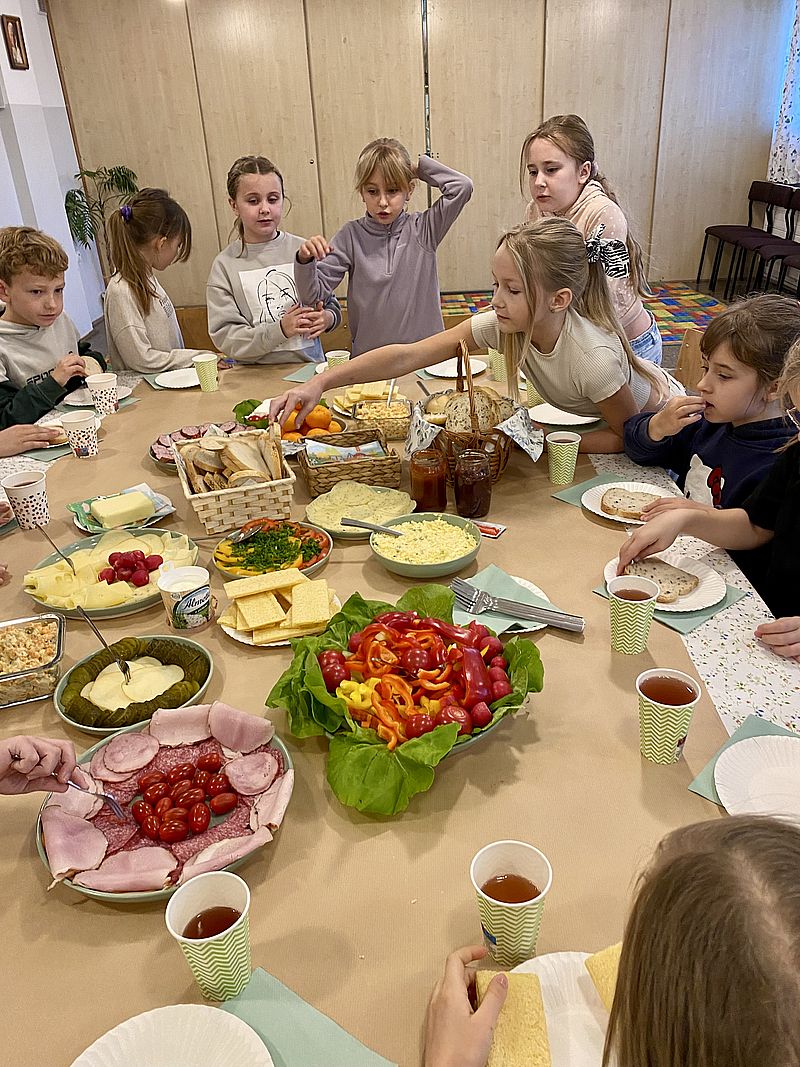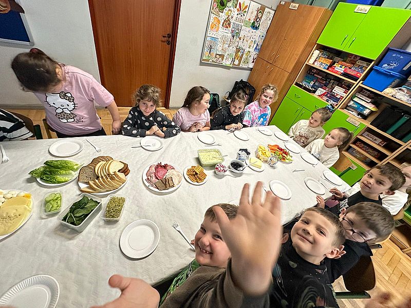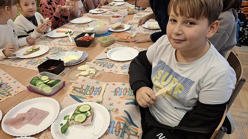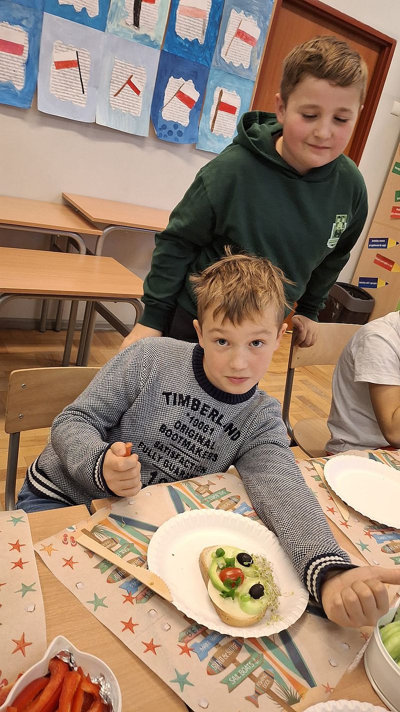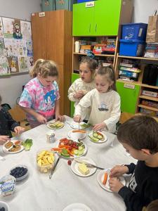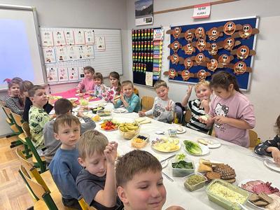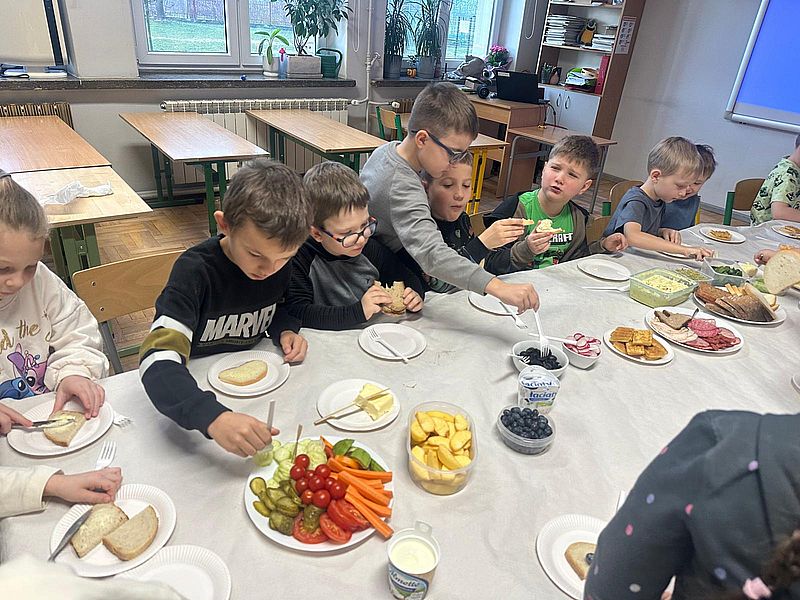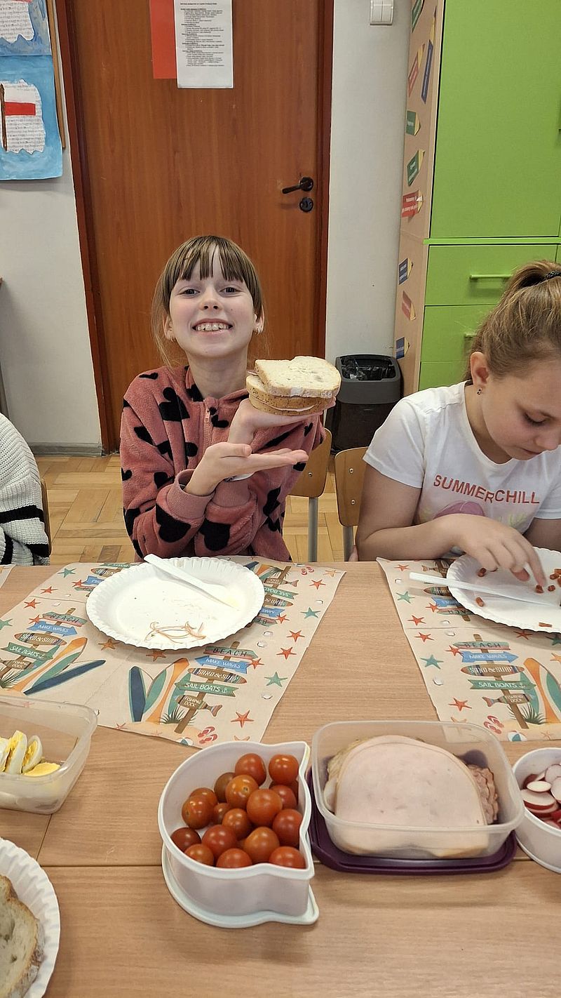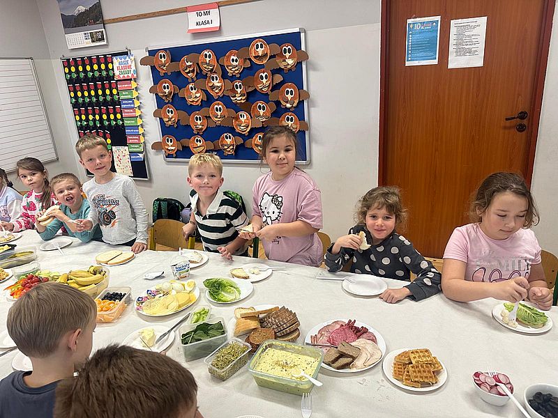 20.11.2025 r. w klasach 1-3 obchodziliśmy Dzień Zdrowego Śniadania, którego celem było przypomnienie uczniom, jak ważny jest pierwszy posiłek dnia. W klasach odbyły się wspólne przygotowania kolorowych, wartościowych śniadań — pełnych warzyw, owoców i pełnoziarnistych produktów.