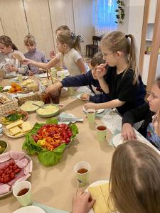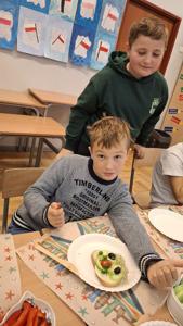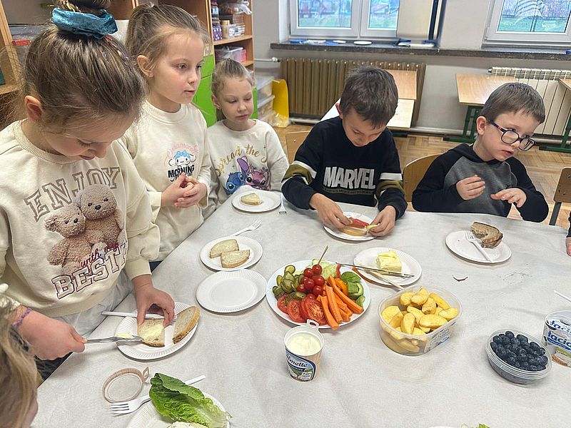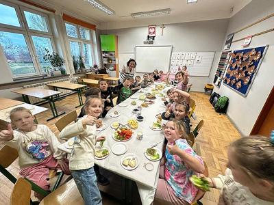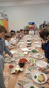 Uczniowie chętnie brali udział w zajęciach, poznawali zasady zbilansowanej diety, a także dowiedzieli się, jakie produkty najlepiej wpływają na naukę i samopoczucie. Nie zabrakło rozmów o zdrowych nawykach oraz degustacji własnoręcznie przygotowanych potraw.