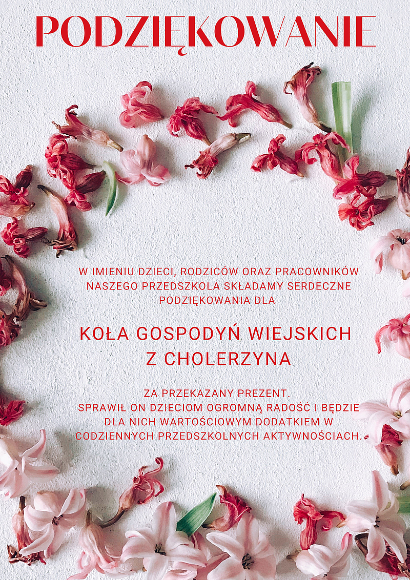 PODZIĘKOWANIE dla KGW z Cholerzyna