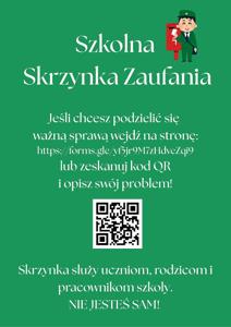 Zobacz również 30.10.2025 OGŁOSZENIE! 21.10.2025 Szkolna Skrzynka Zaufania 09.10.2025 Ogłoszenie Gminnej Komisji Rozwiązywania... OGŁOSZENIE! Opublikowano: 02 listopada 2025 21:52 Kategoria: Ogłoszenia Wydrukuj Wyświetleń: 65